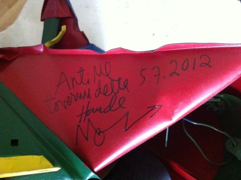 koneilla ja katujyrällä. Sitten mä hiekkapuhalsin ja maalasin ne. Sain