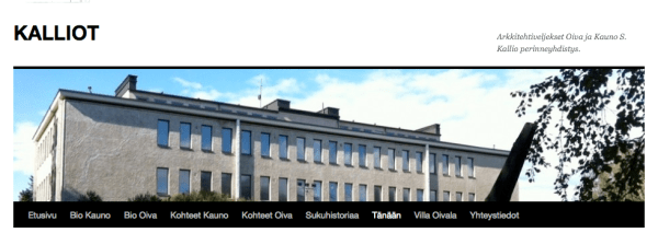 Aloitin juuri kauan ajatuksiani hiertäneen rojektin, Kalliot- Arkkitehtiveljekset Oiva ja Kauno S. Kallion perinneyhdistys. Eli tallennan aika ajoin sivustolle tietoa veljesten elämästä ja arkkitehtuurista. Tutustu tästä.