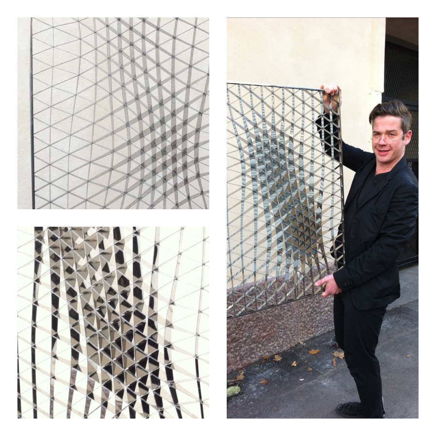 Tapasin tänään sisustusarkkitehti ja muotoilija Jesse Pietilän. Jesse on pitkään kehitellyt tilanjakajaa, Sheer Wall, ja valmistanut siitä nyt rosteri version. Sheer Wall on skaalattavissa eri kokoihin, kohteen ja käyttötarkoituksen mukaan. Aiempi proto oli alumiinia 250 x 250 cm ja tämä uusi rosterinen taideteos 60 x 90 cm. Rosterissa lamellien heijastukset tekevät monia hurmaavia tepposia silmälle. Tässäpä arkkitehdeille oiva tilanjakaja, jolla saadaan funkista ja fiilistä.